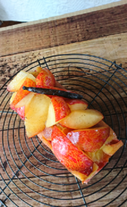 生のプラムをバニラマリネしてのせた