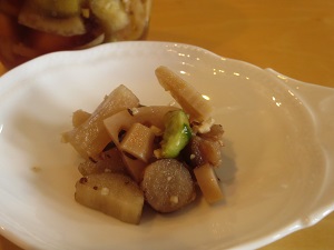 好評なんです(#^.^#) ツイート 福神漬け(和風ピクルス) 今回、レシピには記載されていませんが、 蓮根、きゅうり、茄子、ごぼう、大根、生姜の お野菜を使った福神漬けが参加して頂いた生徒さんには 「美味しいです・・・」と好評なんです(^^) 先生のお勧めは作って3日~7日位が味が染みて 美味しいという事です。 冷奴の上にのせて食べても、美味しく頂けました! 作り方は先生が丁寧に教えて頂けますので安心してくださいね。 近日中には作り方ブログ掲載しますので、お楽しみに(#^.^#) BY STAFF