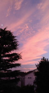 綺麗な夕焼けに思わず・・・ ツイート 8月1日に リビングから余りにもきれいな夕焼けが目に入り 思わず2階のテラスから撮りました。 台風の去った後で風がありましたので、 雲が流れたとてもきれいでした。 良~く見ると 我が家のヒマラヤ杉の上に月が・・・ 自分で見つけて感激しています。 な~んて、単純な私でしょうか 西の空が今日の一番でした! 目で見るのとはちょっと違ってますが、 余りにもきれいな夕焼けでしたので、 数日前の事でしたが、どうしても掲載したくて 少しは癒されましたか(^_-)-☆