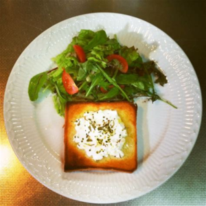 小さめの食パンを使う事とサラダも一緒に是非のせてください。
